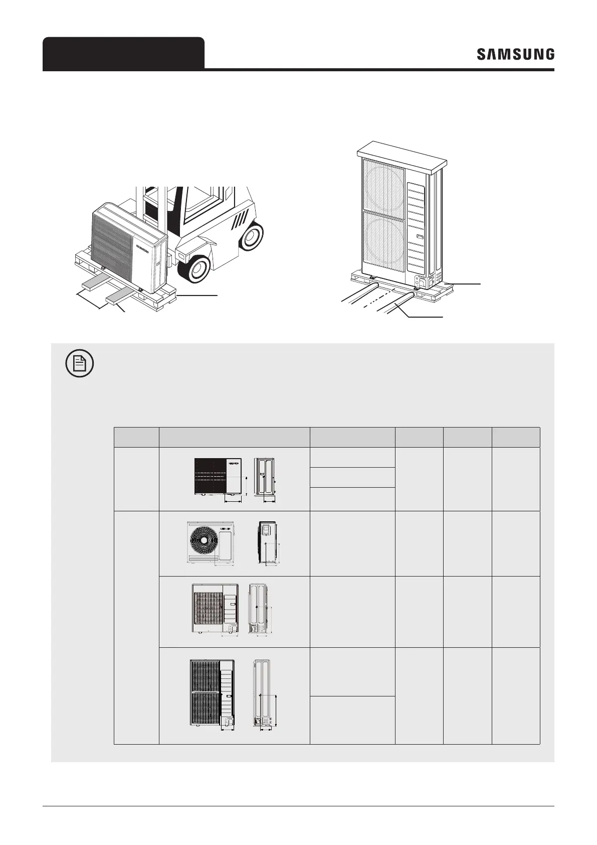 not damage the outdoor unit. Operating a forklift may require special certification or training according to local