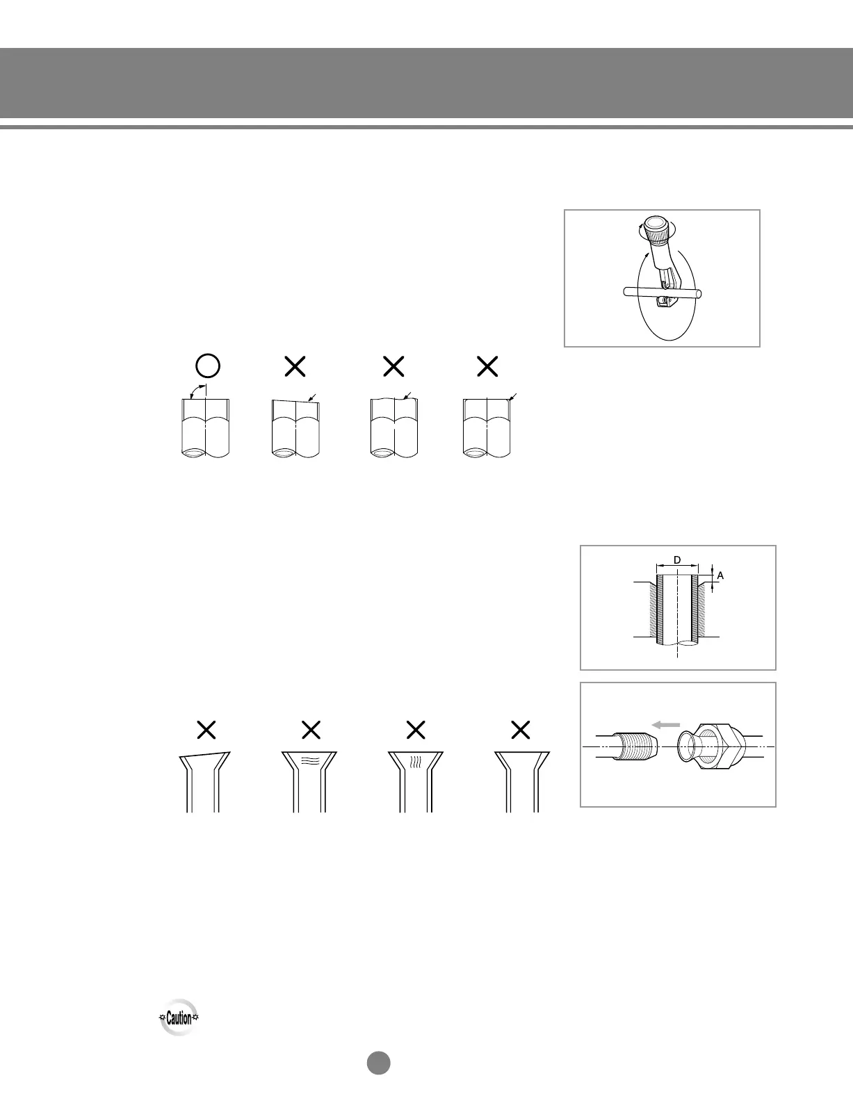 5) Check that the flaring is correct, referring to the illustrations