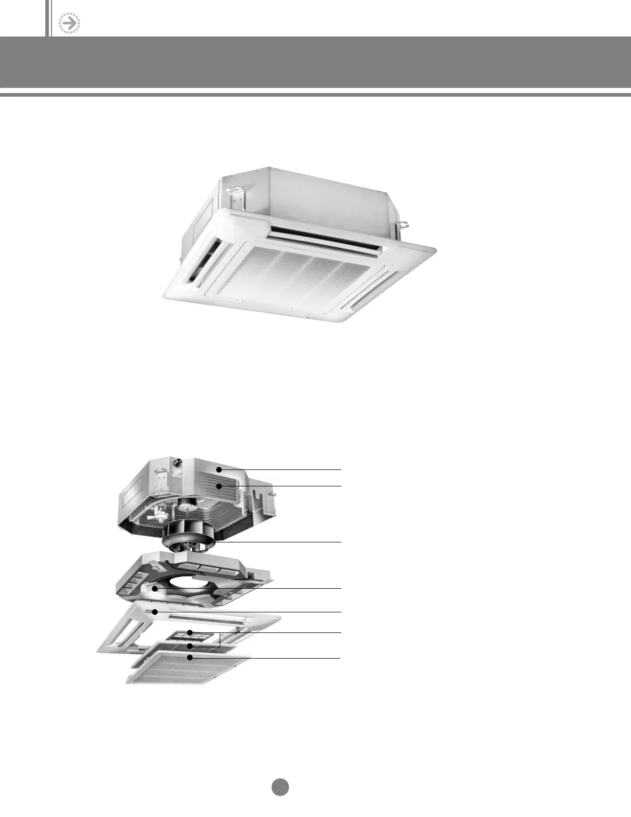 The 4-way cassette type air conditioner has all the features of the 1-way cassette type; compact design,