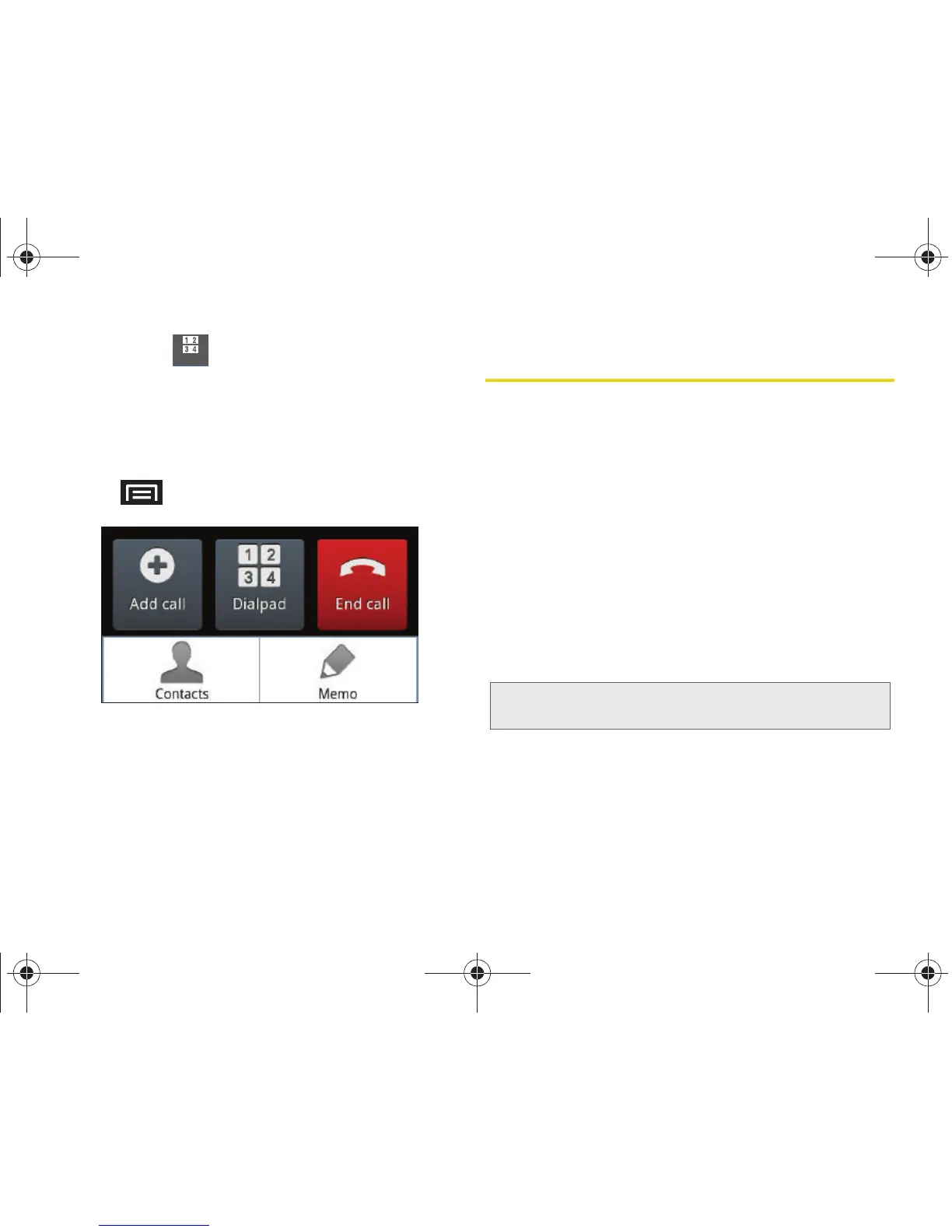 Pressing during a call displays a list of available