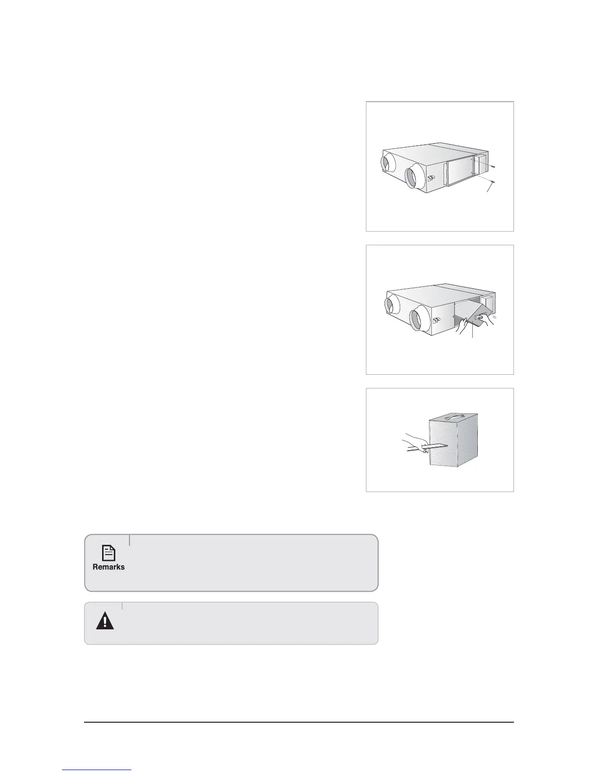 O The heat exchange element is heavy. Take care not to drop it.