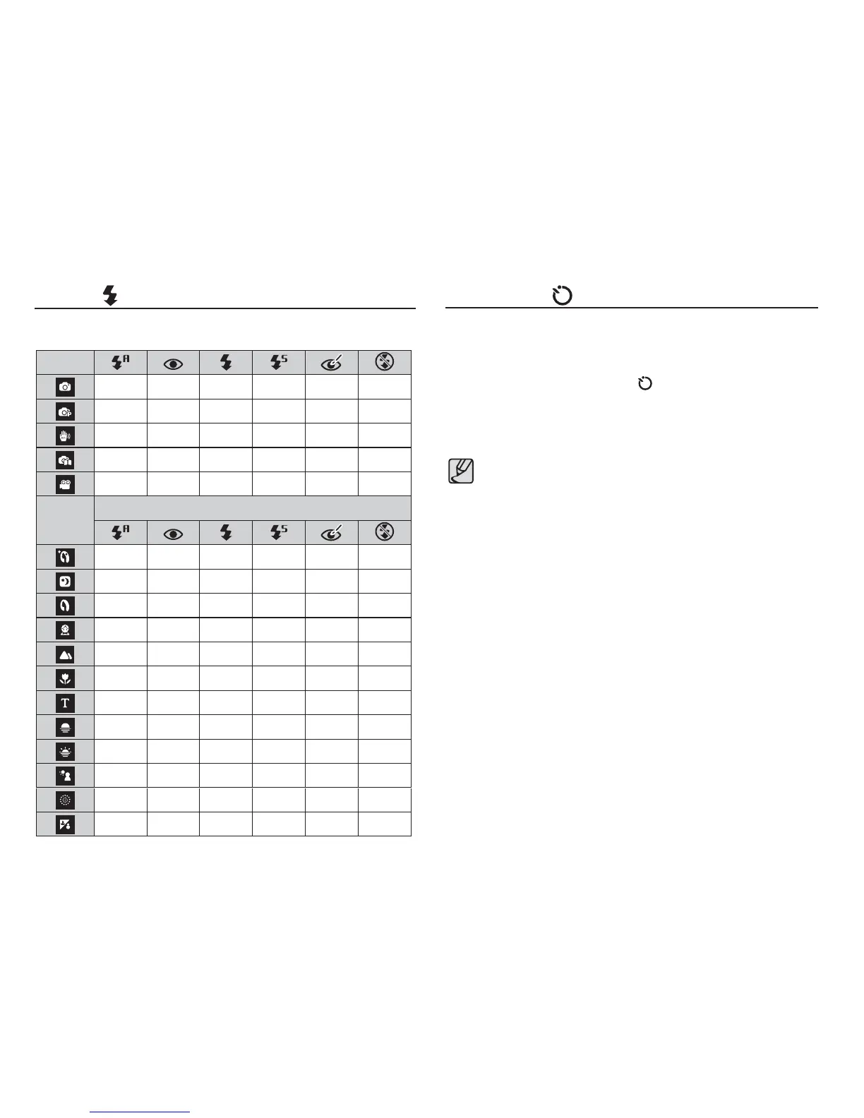 Available ash mode, by recording mode ( o : Selectable)