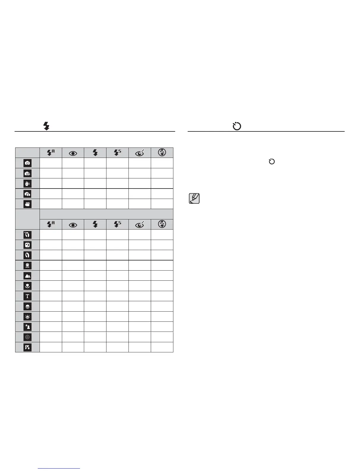 Available fl ash mode, by recording mode ( o : Selectable)