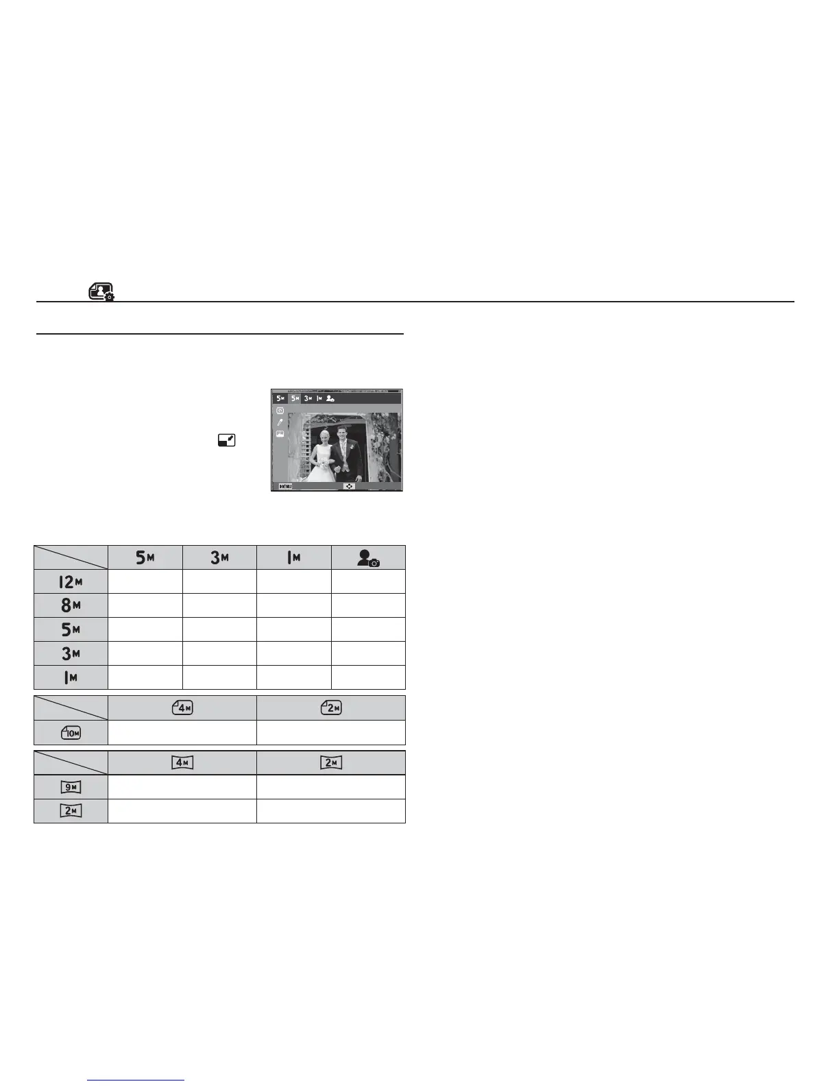 Change the resolution (size) of pictures taken. Select [Start image]