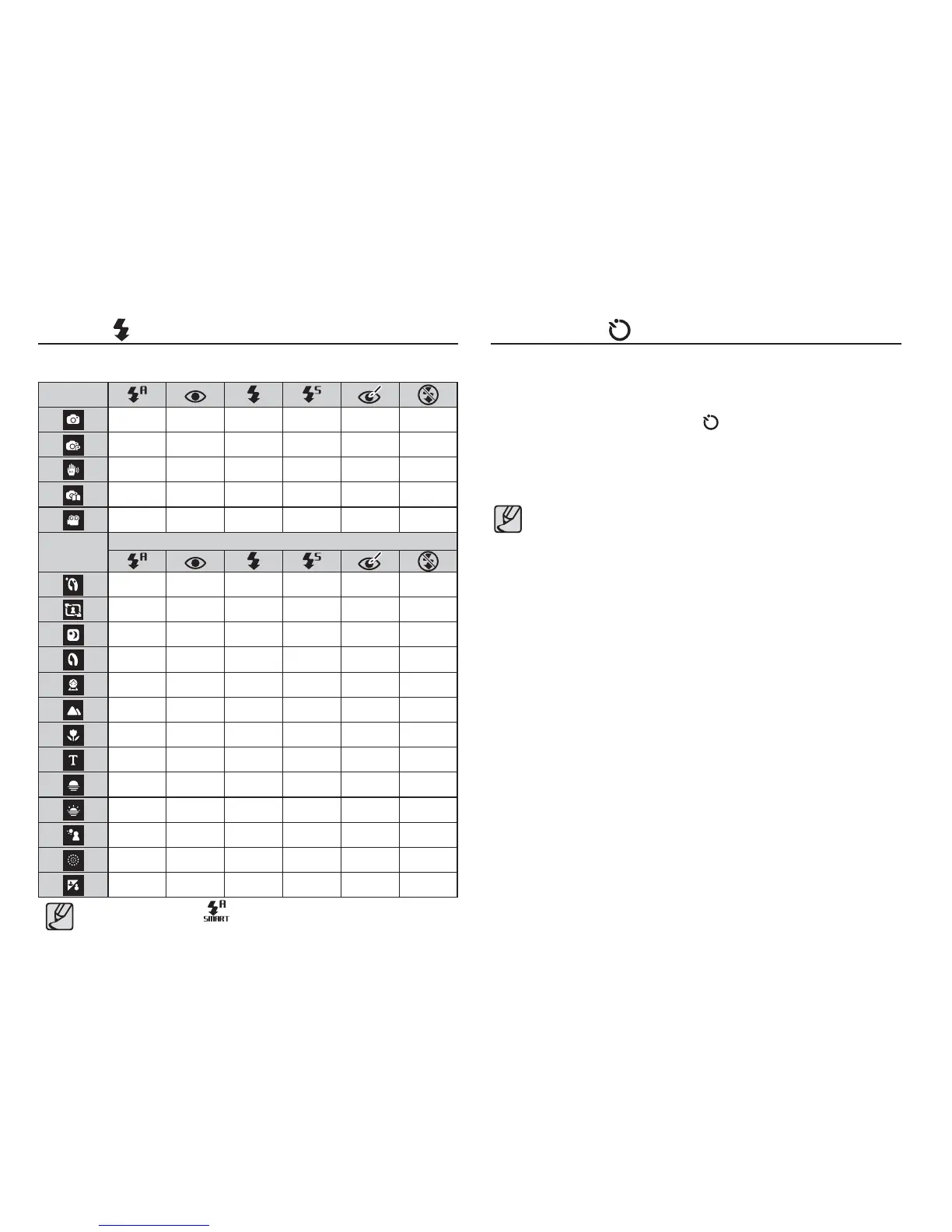Available fl ash mode, by recording mode ( o : Selectable)