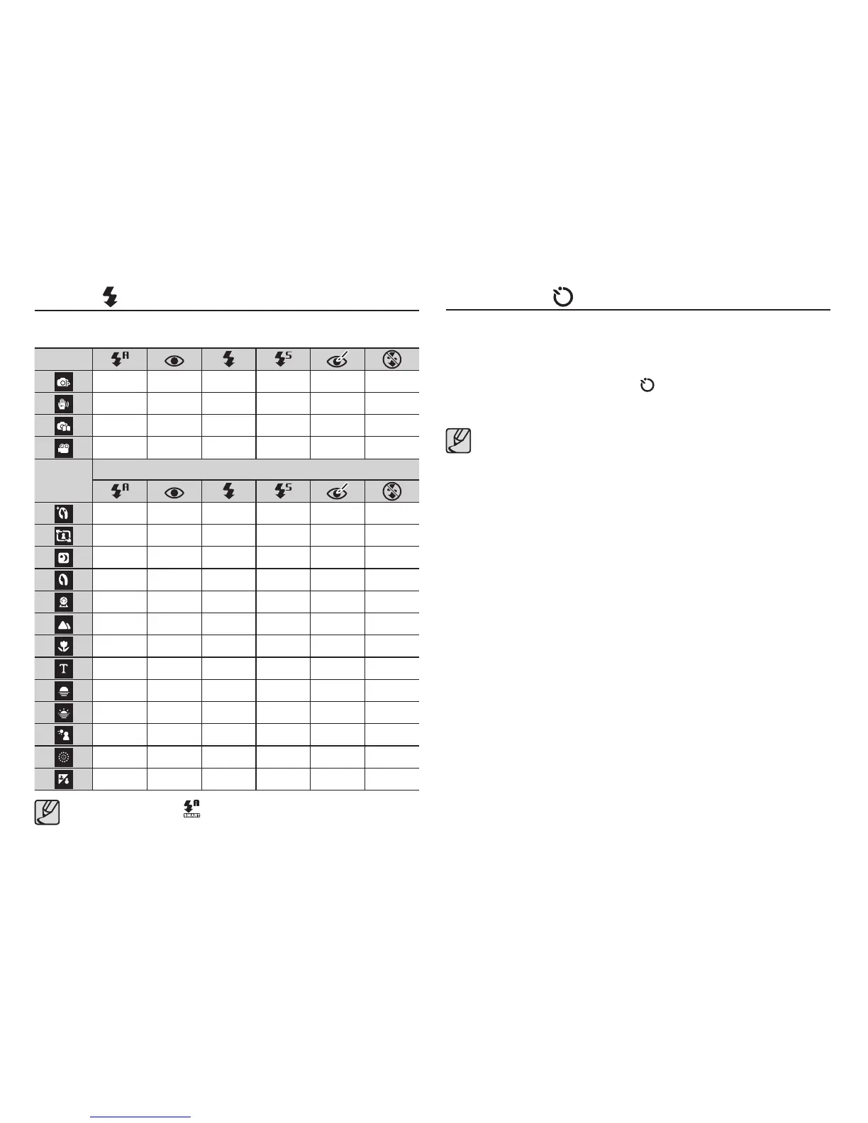 vailable flash mode, by recording mode ( o : Selectable)