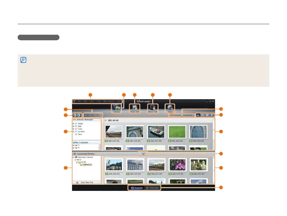 The Intelli-studio allows you to play back and edit files. You can also upload files to websites, such as Flickr or YouTube. For details, select