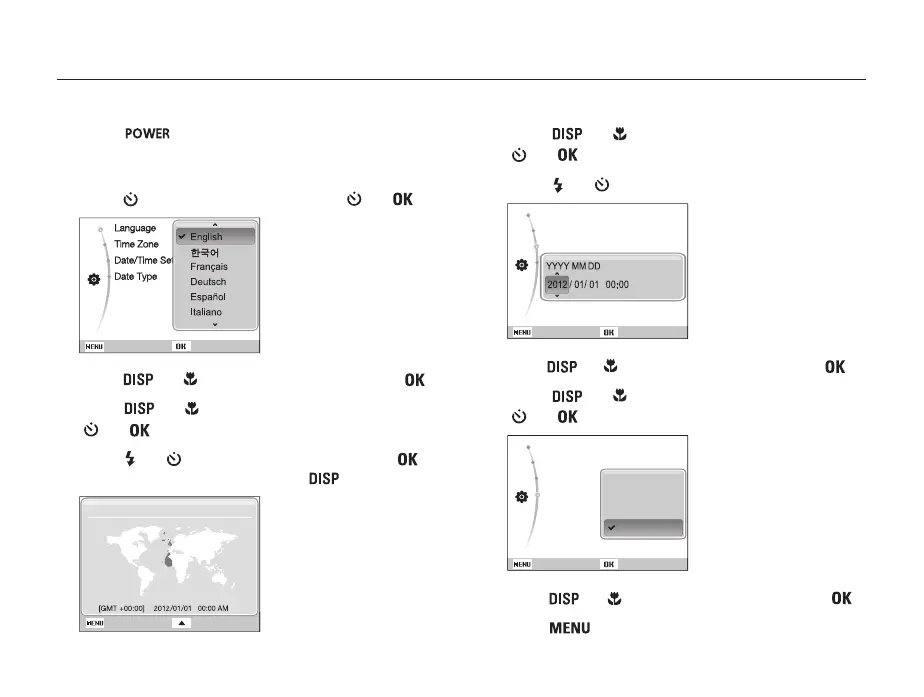 • The initial setup screen appears when you turn on the camera