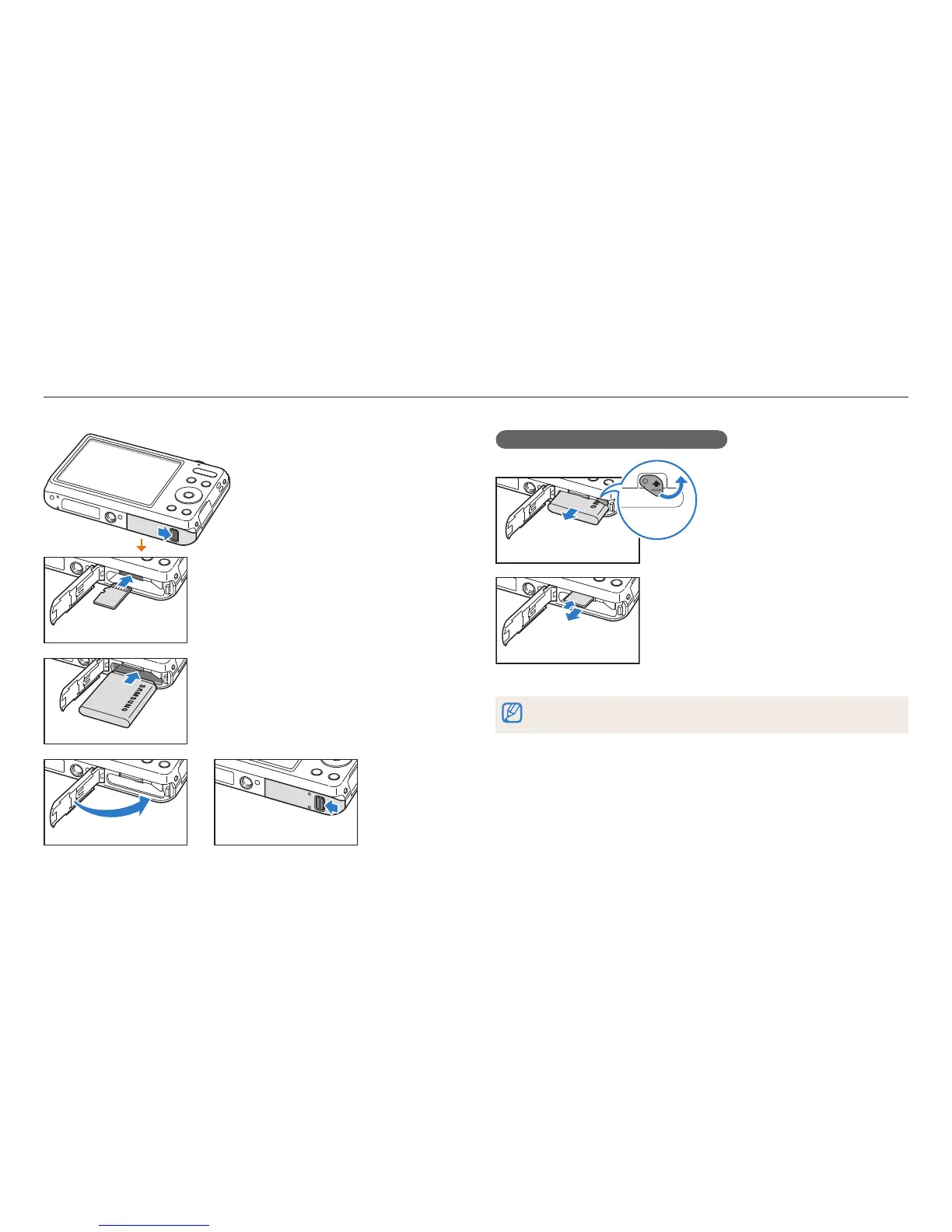 Inserting the battery and memory card