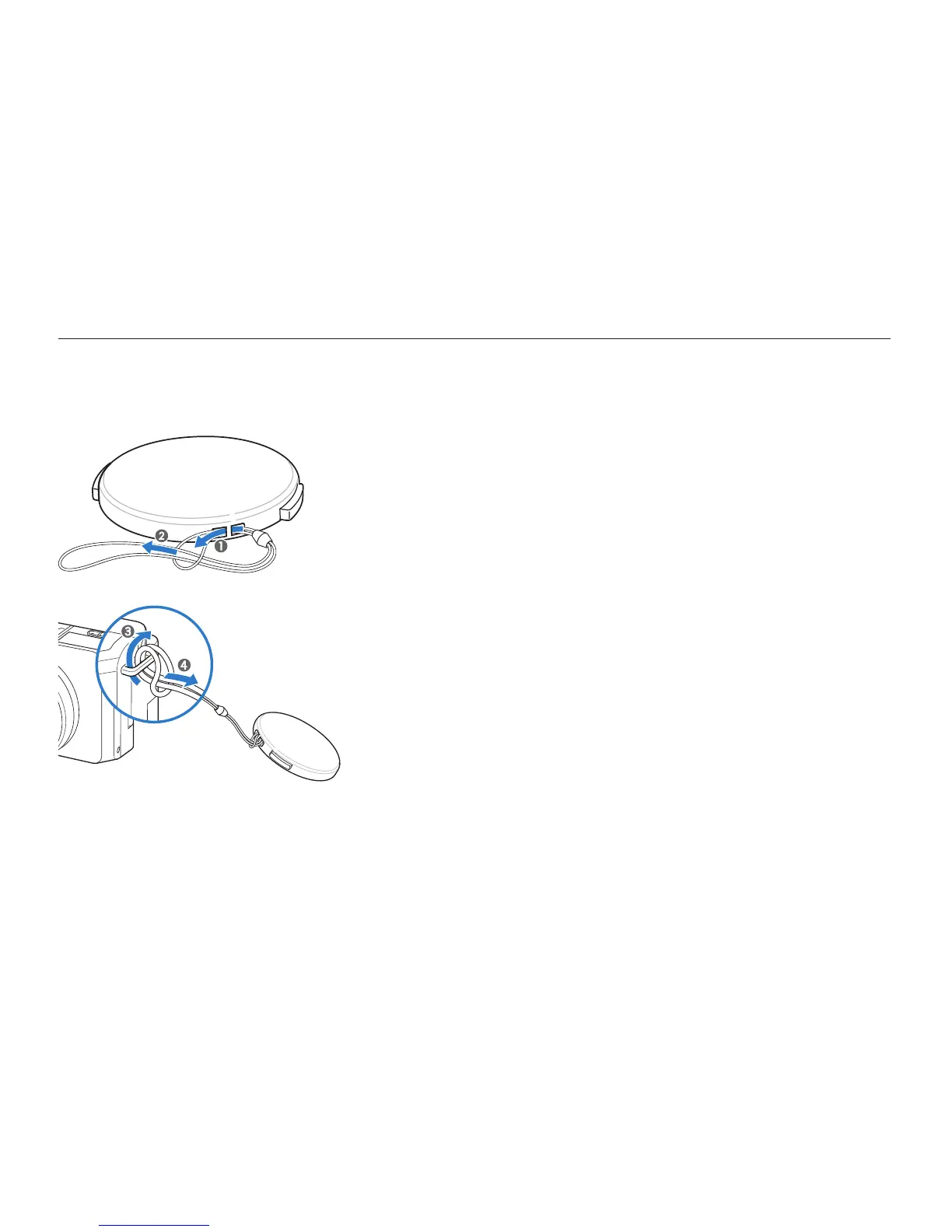 Attach a lens cap with a lens cap strap to protect the camera lens.