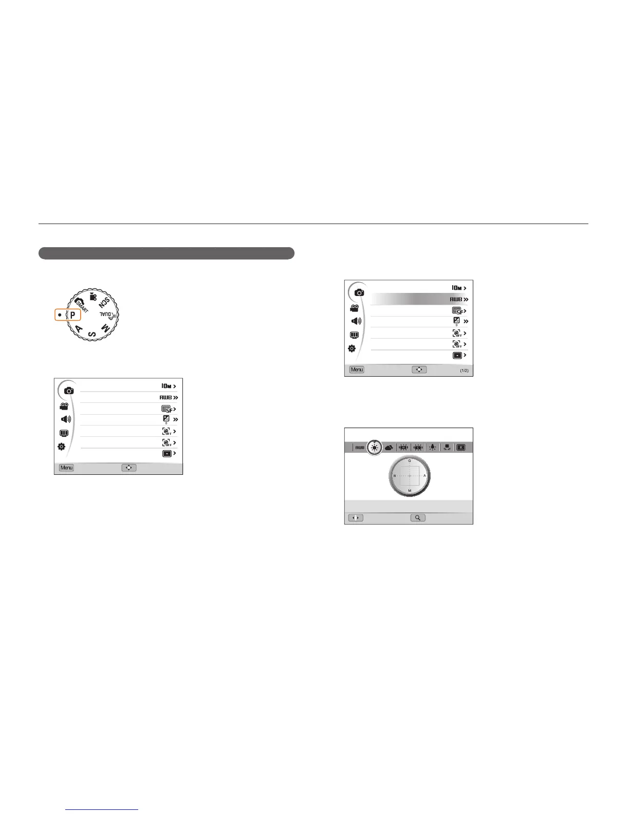 E.g. Selecting the white balance option in Program mode