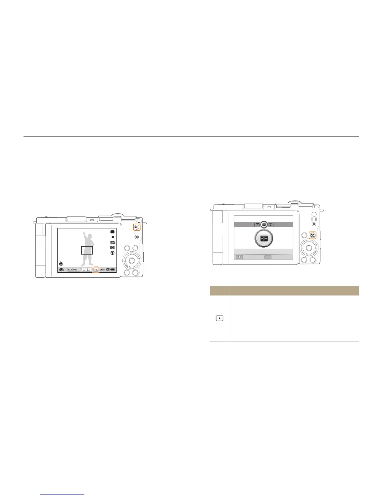The adjusted exposure value locks when [E] is pressed, and