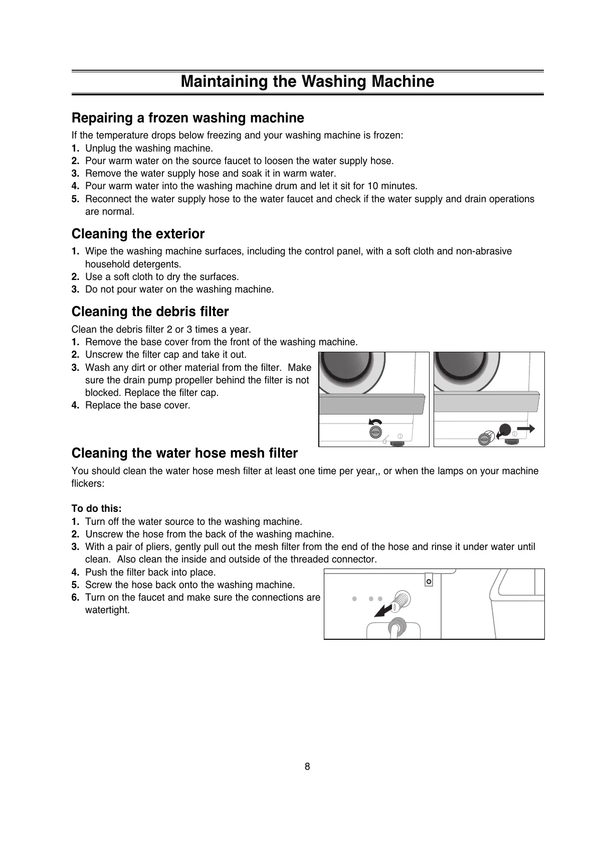 Clean the debris filter 2 or 3 times a year.