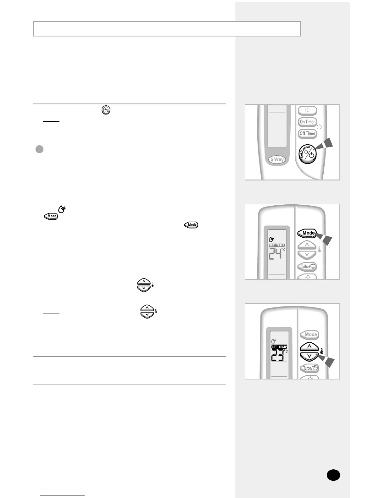 ◆ The air conditioner starts up in the mode selected when