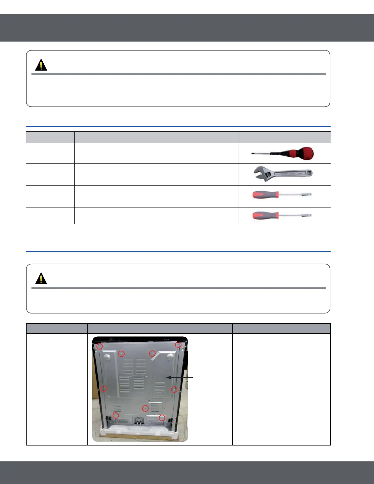 When you work on the electric range, be careful when handling the sheet metal parts. Sharp