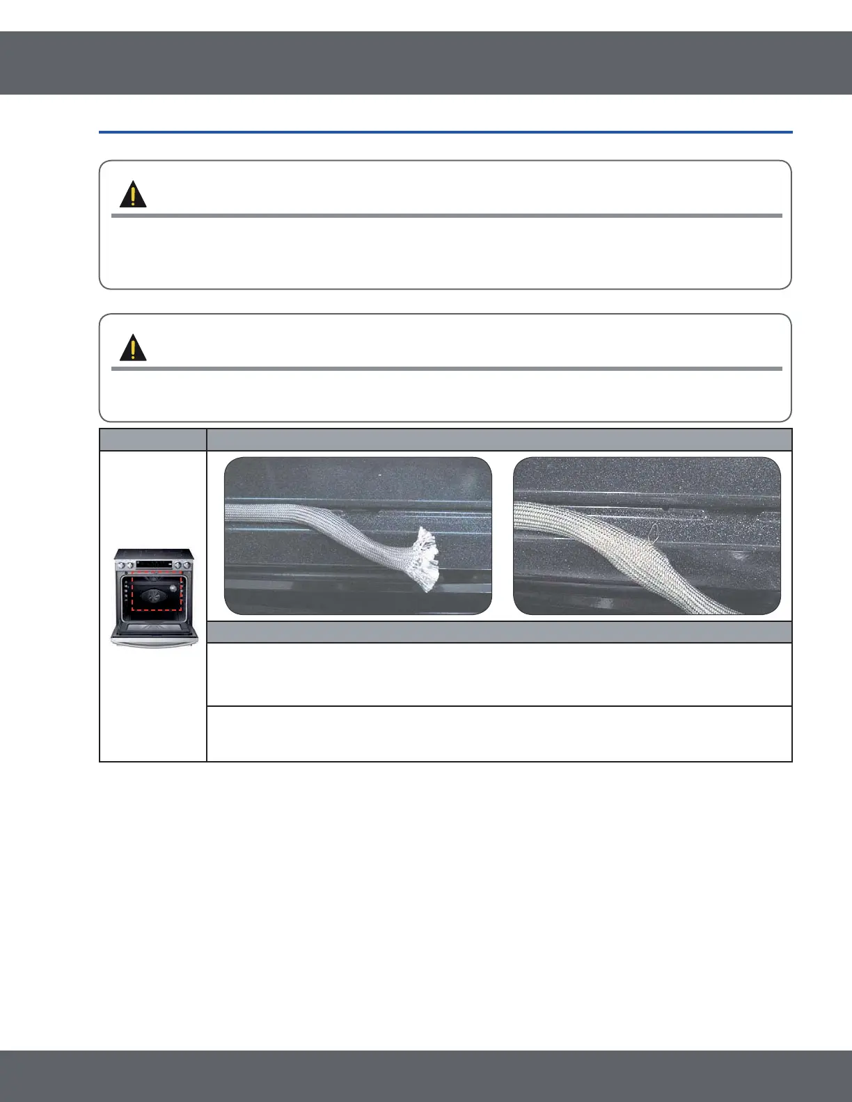 When you work on the electric range, be careful when handling the sheet metal parts. Sharp edges may