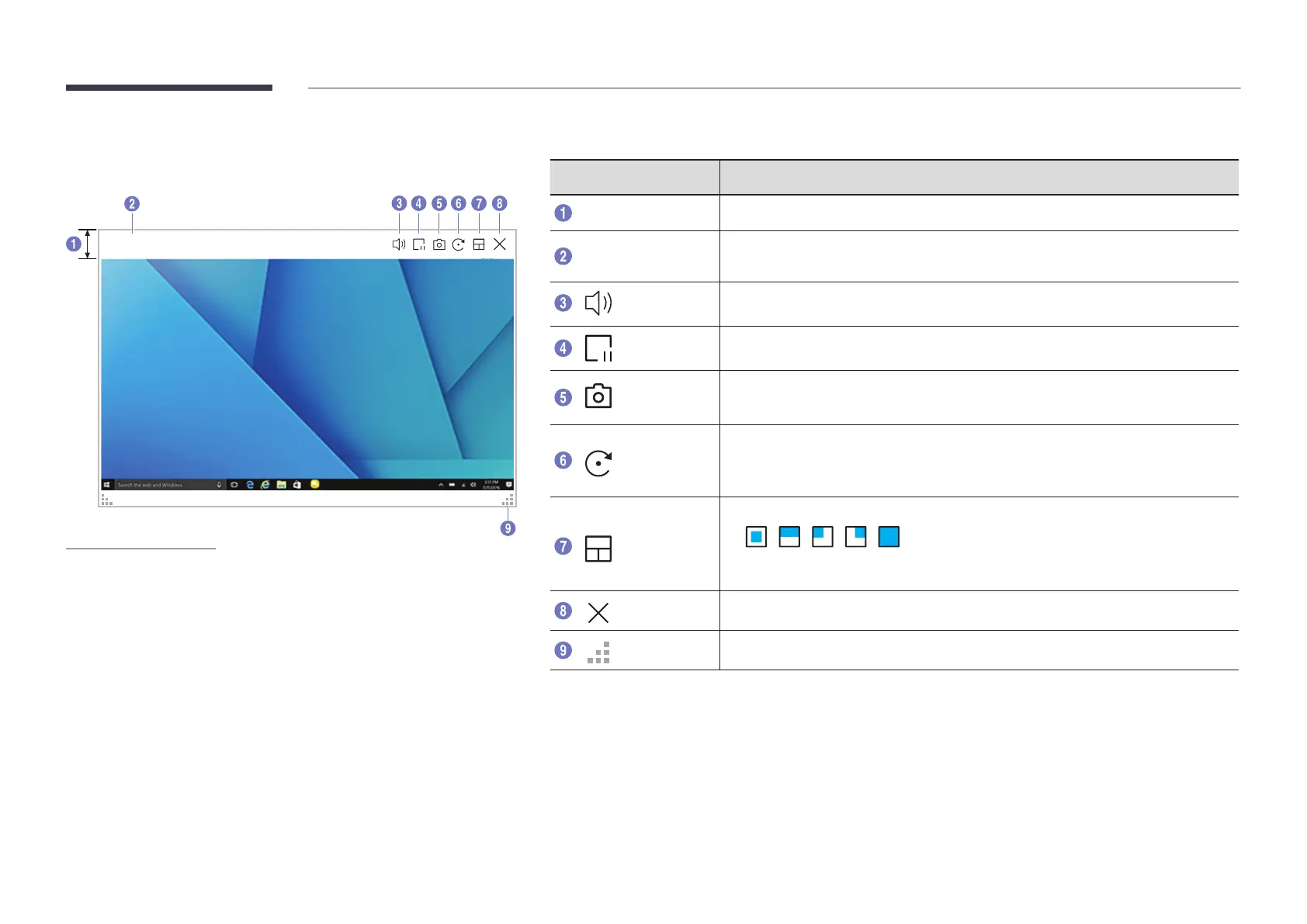 The icon images are for position reference only. The size of the screen may differ