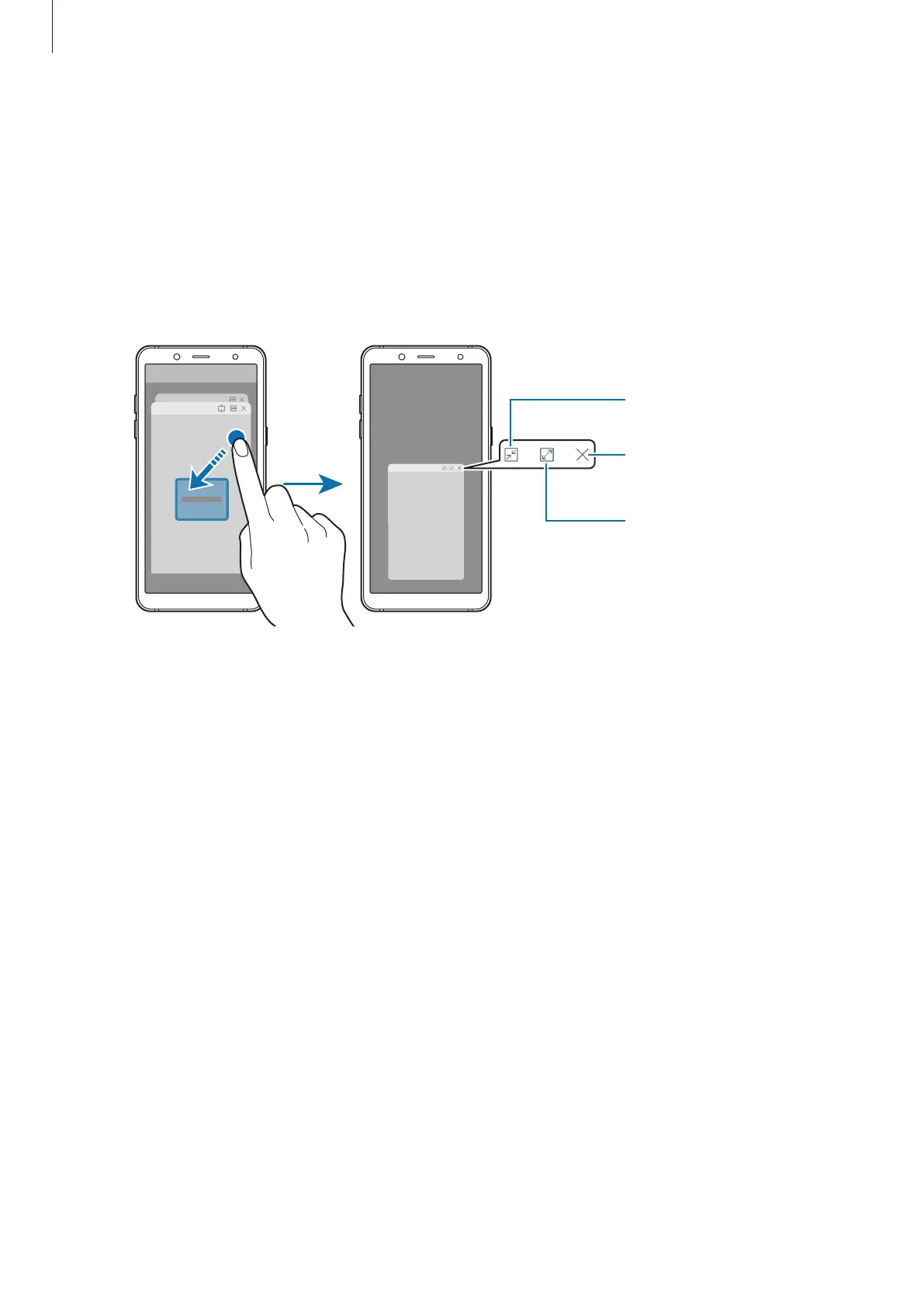 Swipe upwards or downwards, tap and hold an app window, and then drag it to