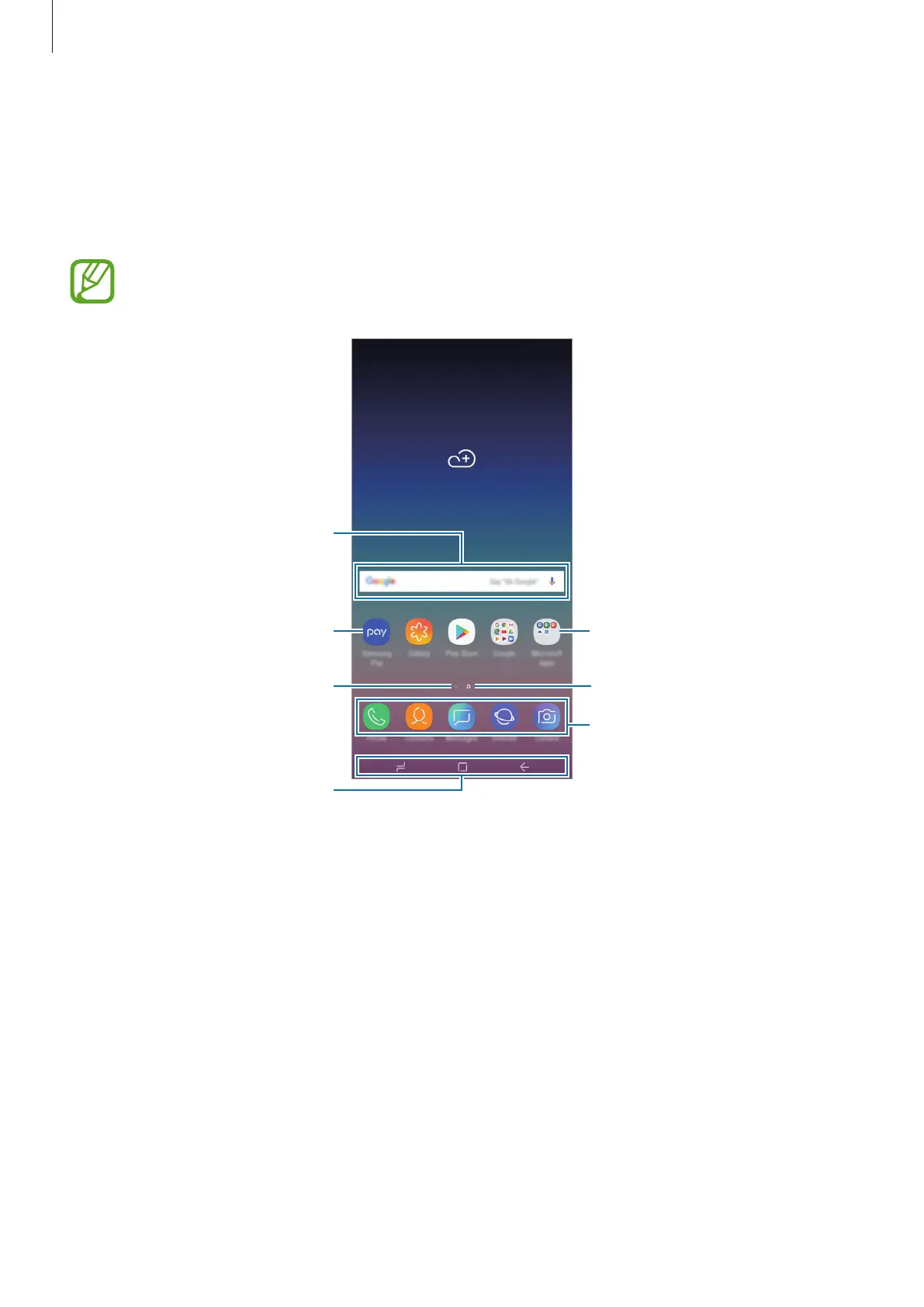 The Home screen is the starting point for accessing all of the device’s features. It displays