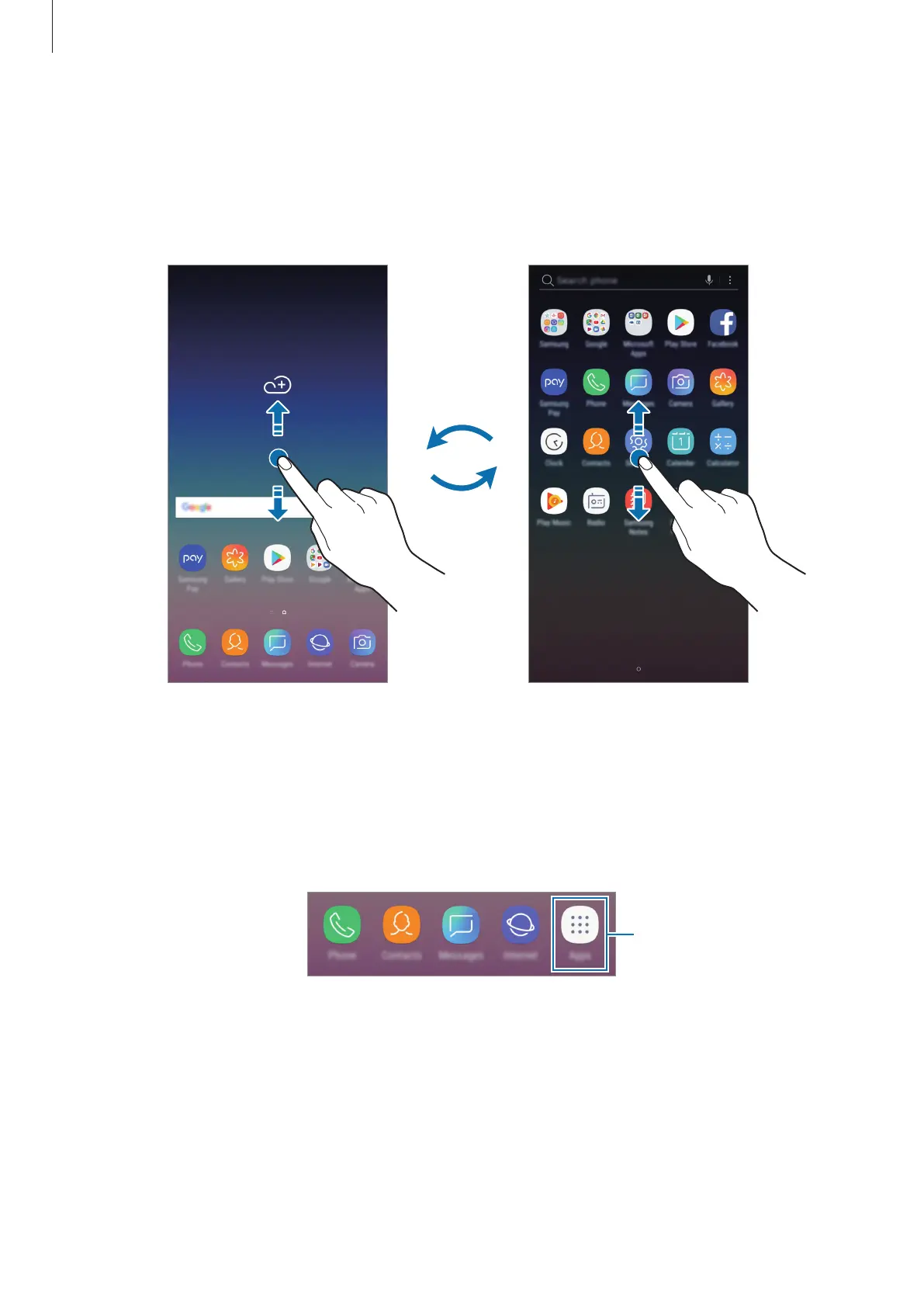 Switching between Home and Apps screens