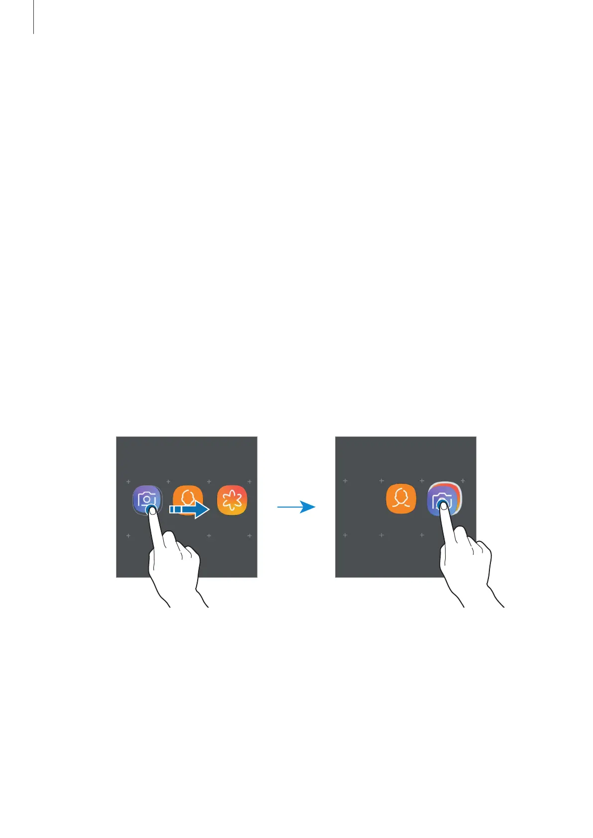 Tap and hold an app to drag it to a new location.