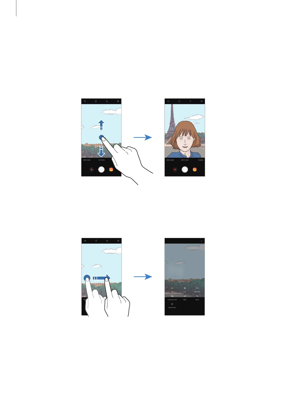 On the preview screen, swipe upwards or downwards to switch between cameras.