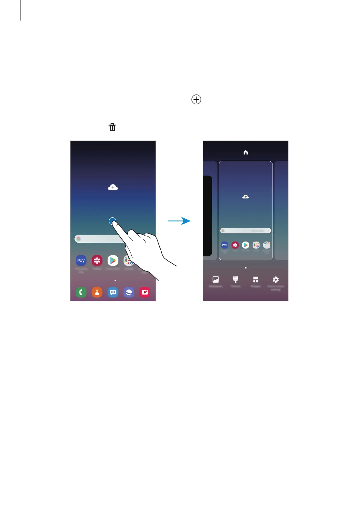On the Home screen, tap and hold an empty area, or pinch your fingers together to access