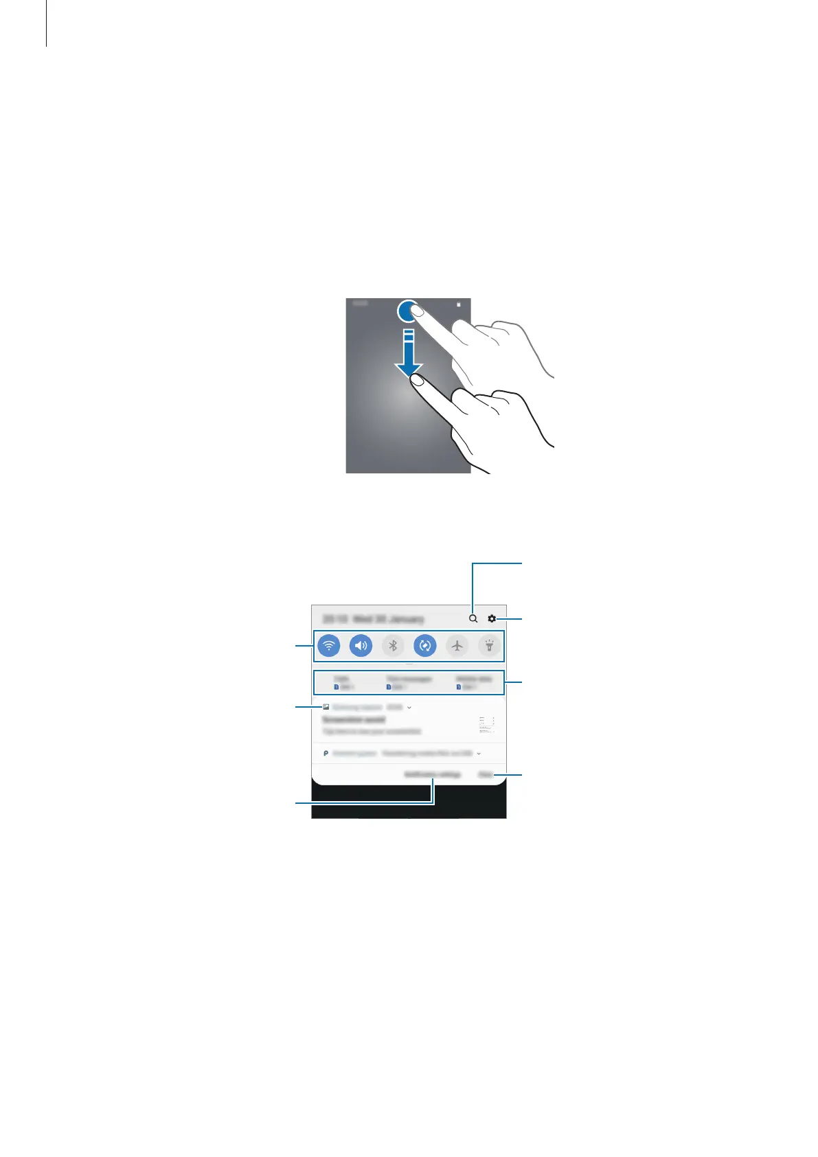 To open the notification panel, drag the status bar downwards. To close the notification panel,