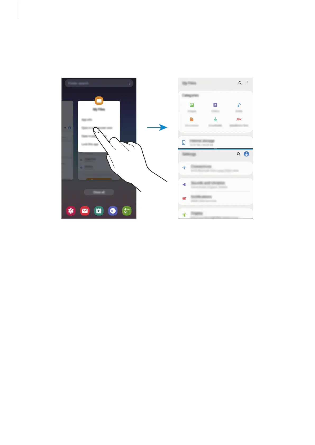 When you drag the bar between the app windows to the top or bottom edge of the screen,