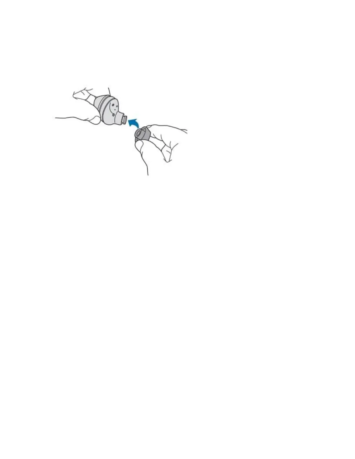 2 Cover the latch at the bottom of the earbud with the ear tip