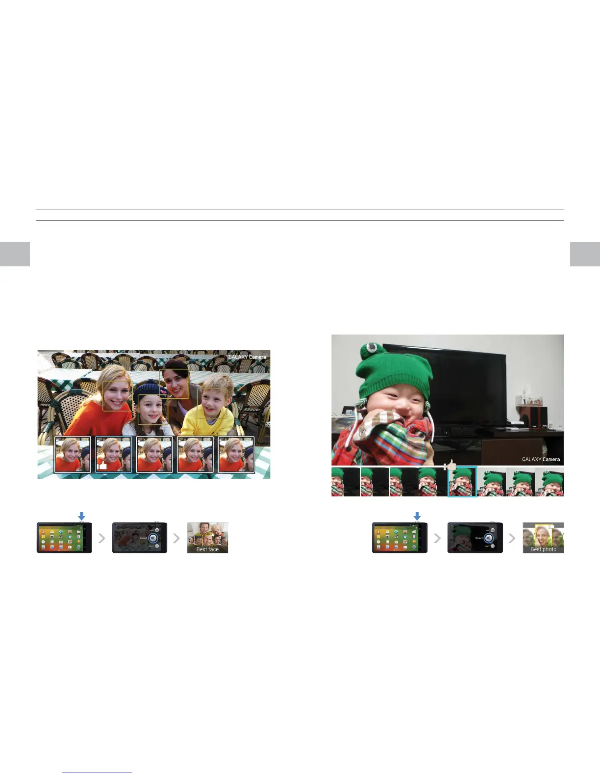 Turn on the camera function Press the Smart button Select Best Photo modeTurn on the camera function Press the Smart button Select Best face mode