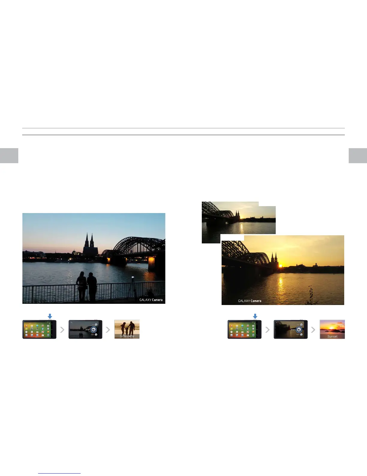 Turn on the camera function Press the Smart button Select Sunset modeTurn on the camera function Press the Smart button Select Silhouette mode