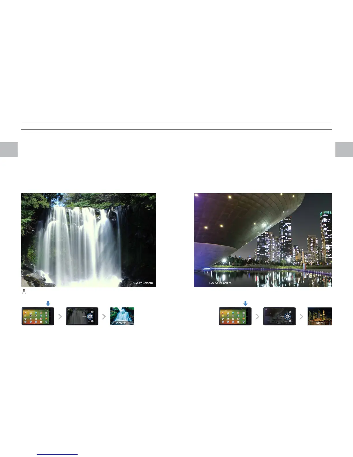 Turn on the camera function Press the Smart button Select Night modeTurn on the camera function Press the Smart button Select Waterfall mode