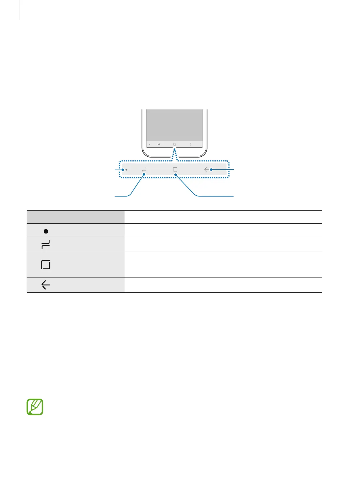 When you turn on the device, the soft buttons will appear on the navigation bar at the