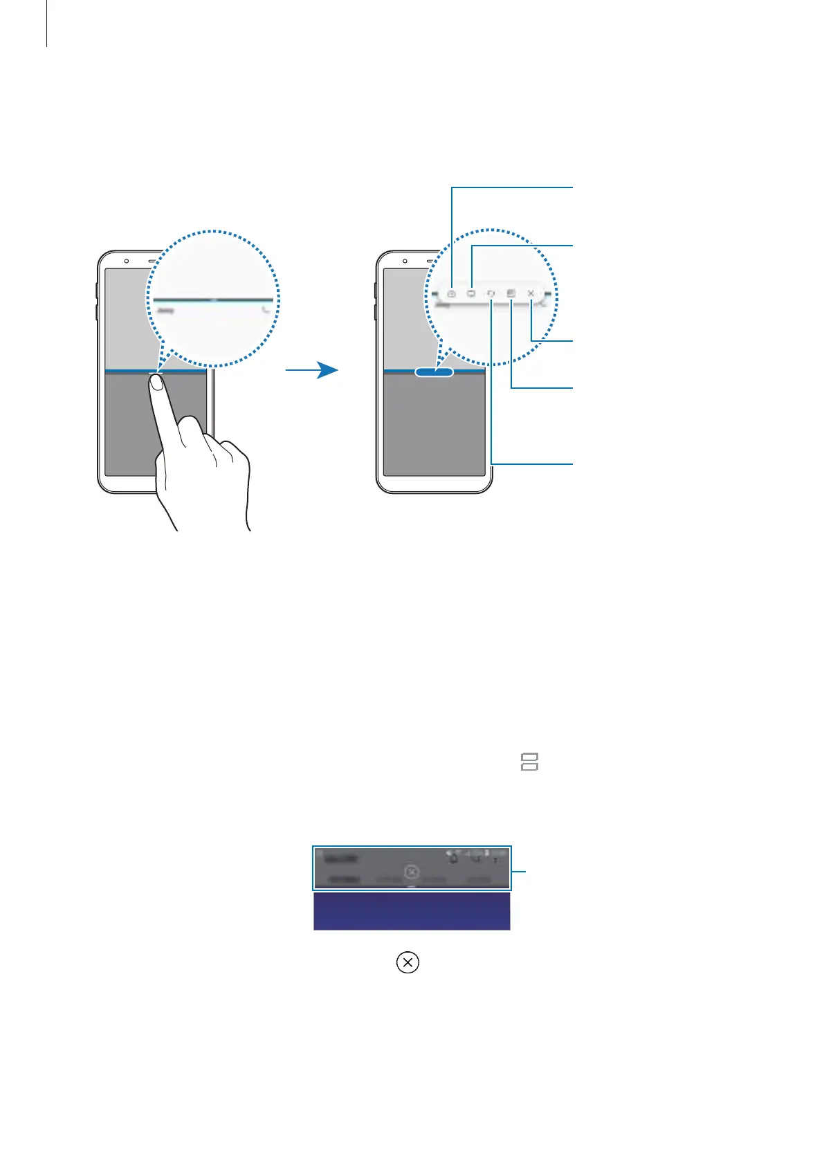 bar. The app in the lower window will close and the app in the upper window will remain