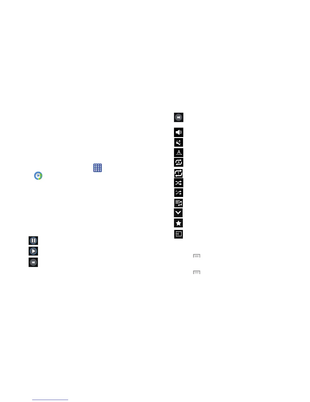 4. The following Music controls are available: