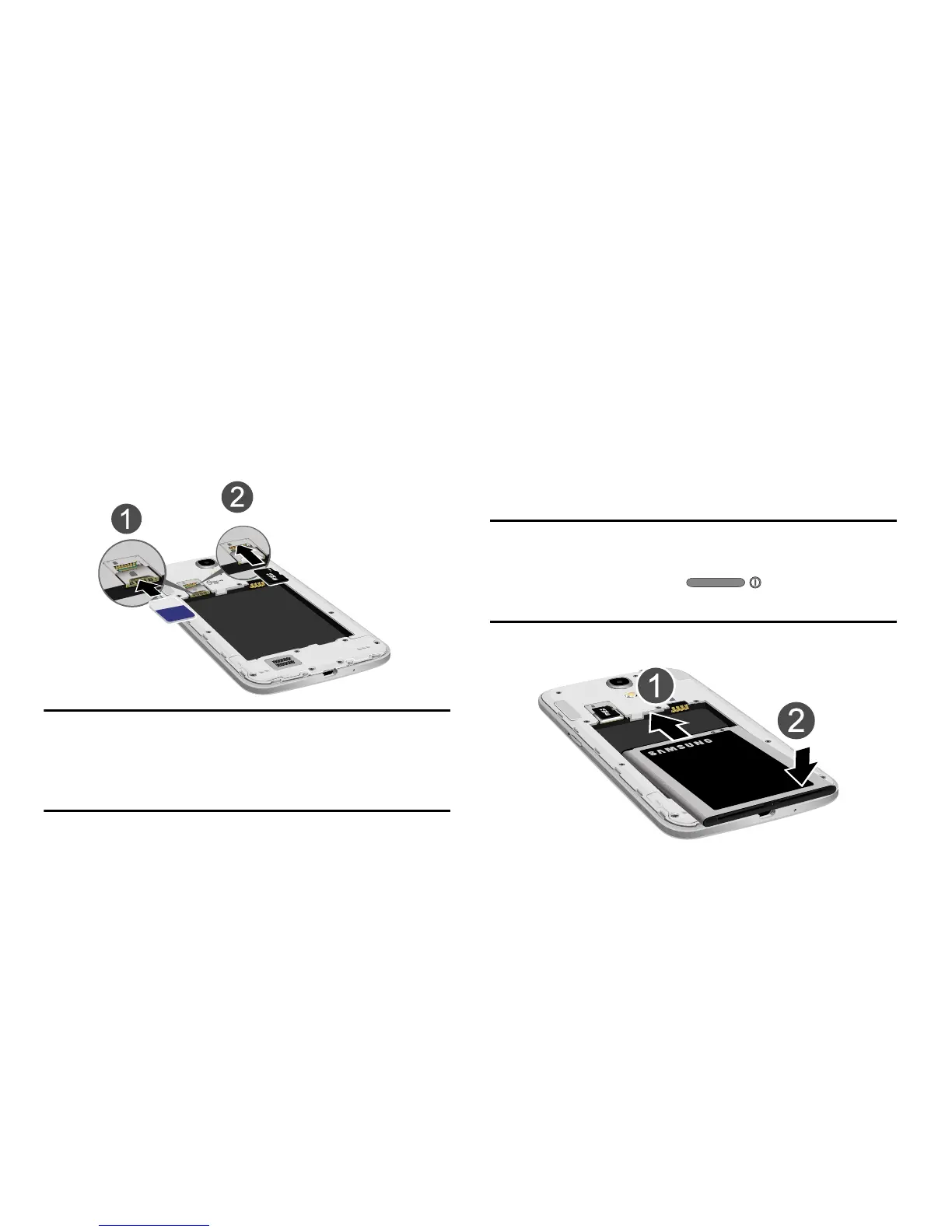2. Gently press down to secure the battery (2).
