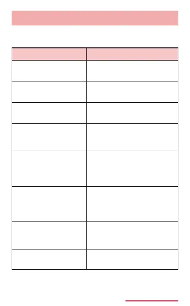 The following items appear when touching and