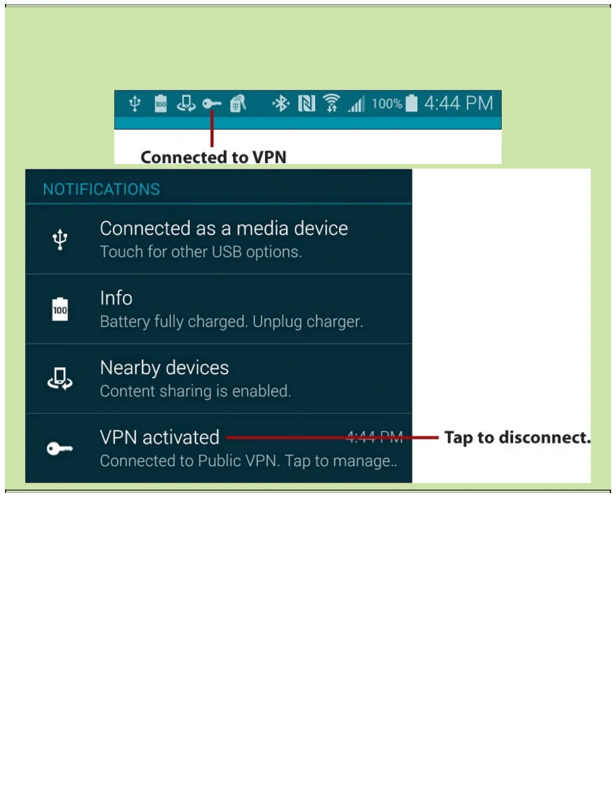 Notificationbar.Thisindicatesthatyouareconnected.IfyoupulldowntheNotificationbar,you