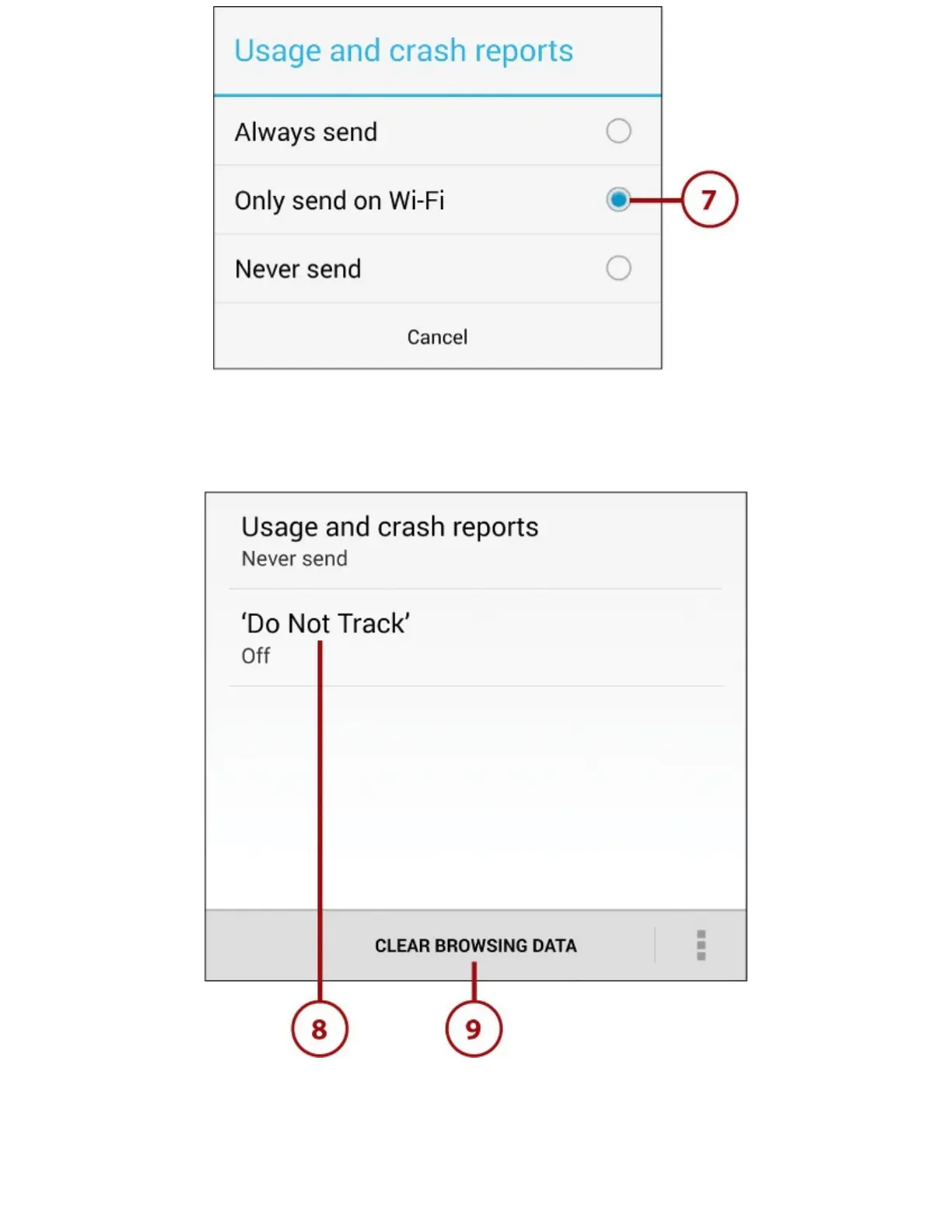 8.Tap‘DoNotTrack’todisplaytheDoNotTrackscreen,whereyoucanchoosewhethertoturnon