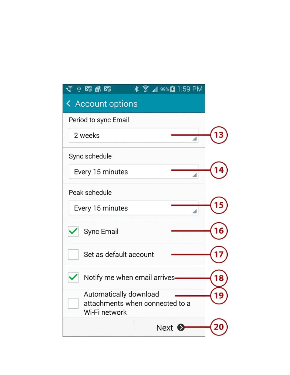 15.TaptochangethefrequencywithwhichemailfromthisaccountsynchronizestoyourGalaxy