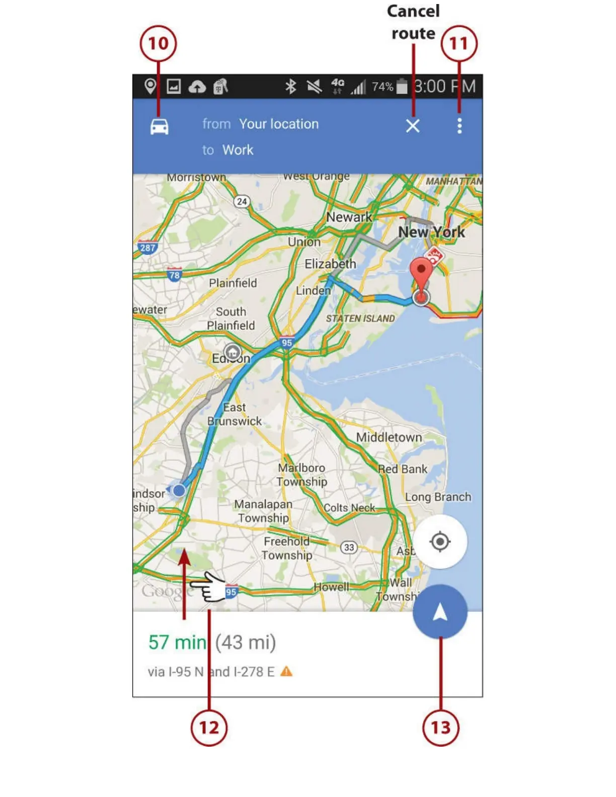 14.Driveorstartwalkingandfollowtheonscreenroute,orlistentotheturn-by-turndirections.