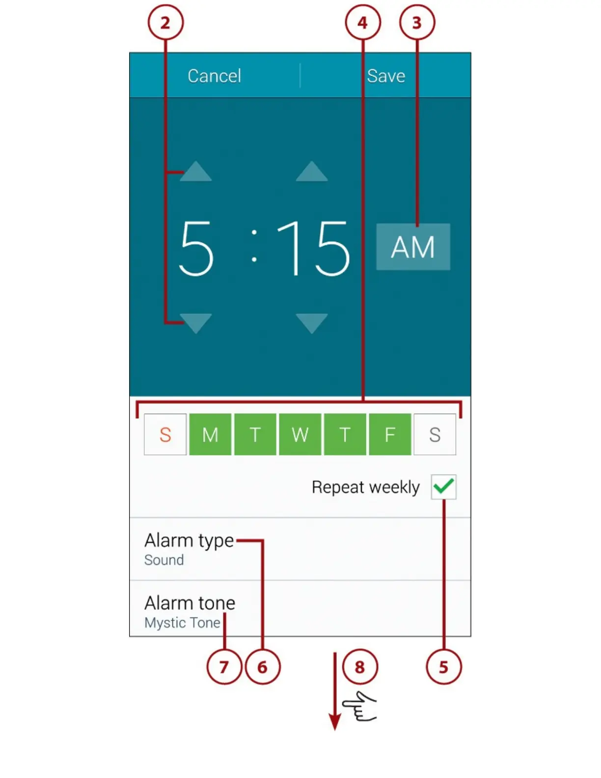 9.DragtheVolumeslidertoadjustthevolumeofthealarm.