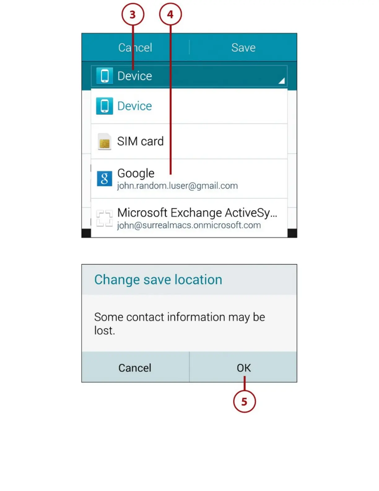 5.IftheChangeSaveLocationscreenopens,warningyouthatsomecontactinformationmaybe