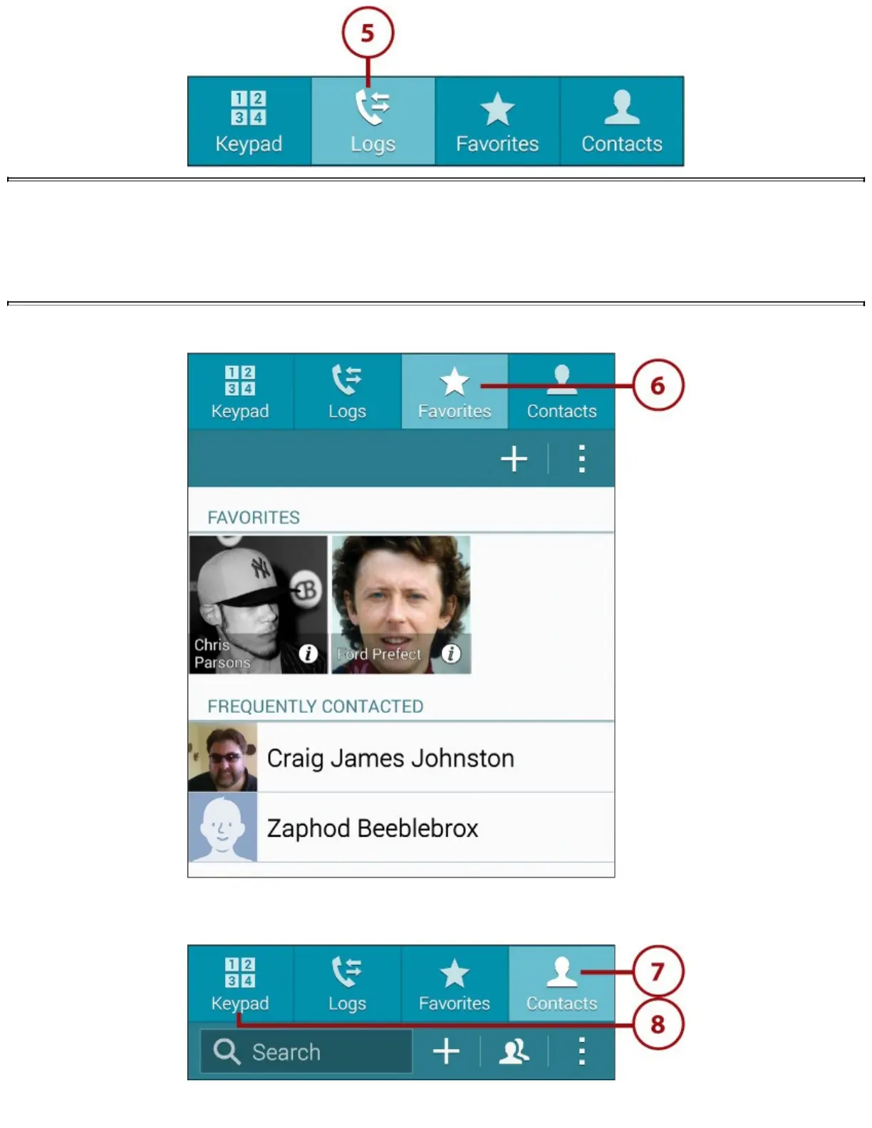 6.TapFavoritestoseelistsofFavoritesandFrequentlyContactedcontacts.