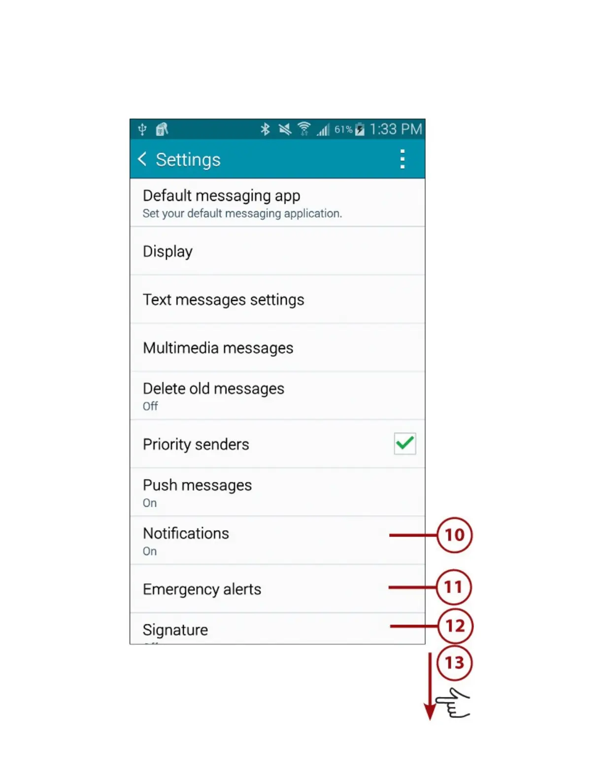 12.Taptoturnonoroffaddingasignaturetoeachmessageyousend.Rememberthatthetextinthe