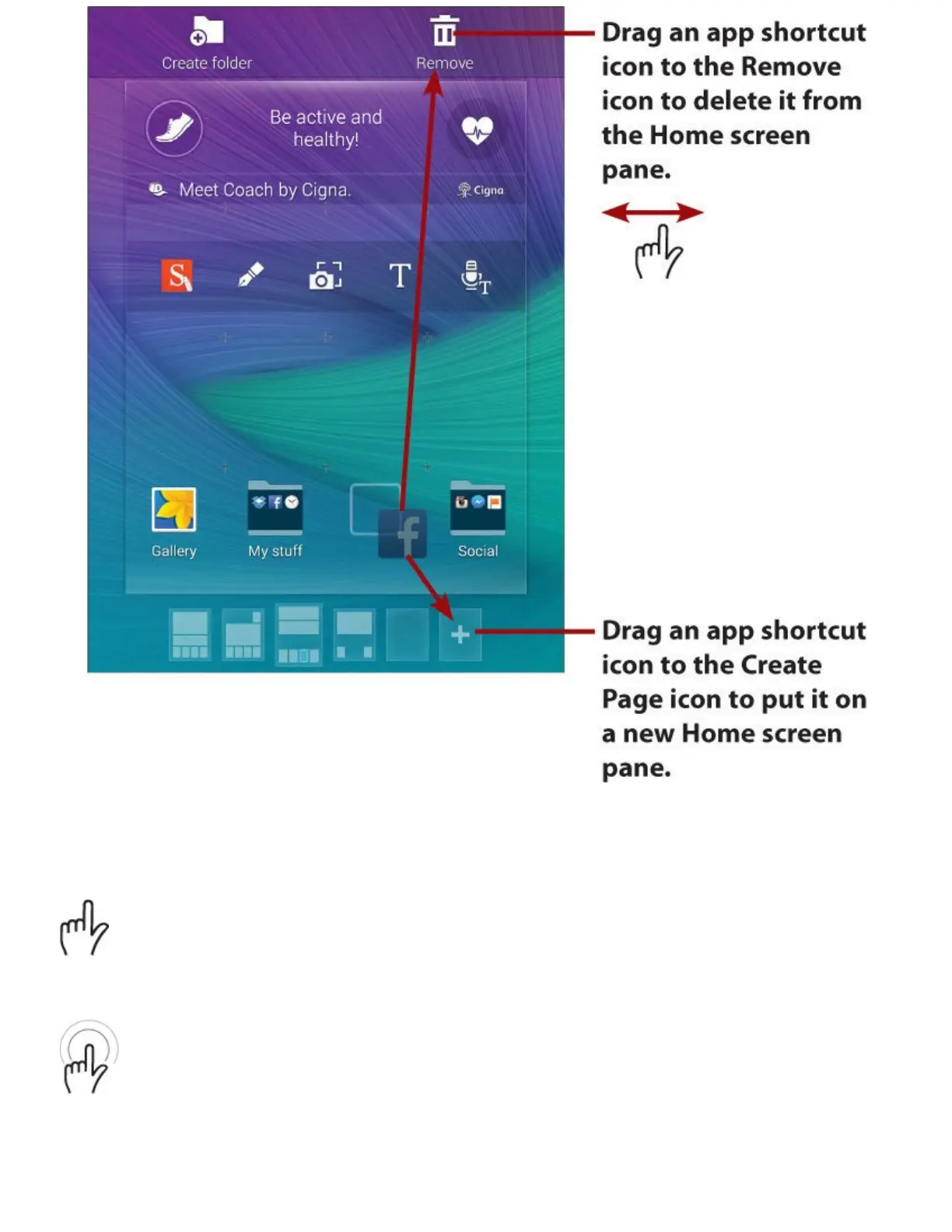 blankareaoftheHomescreen,amenupopsup.Ifyoutouchandholdanicon,youcanreposition