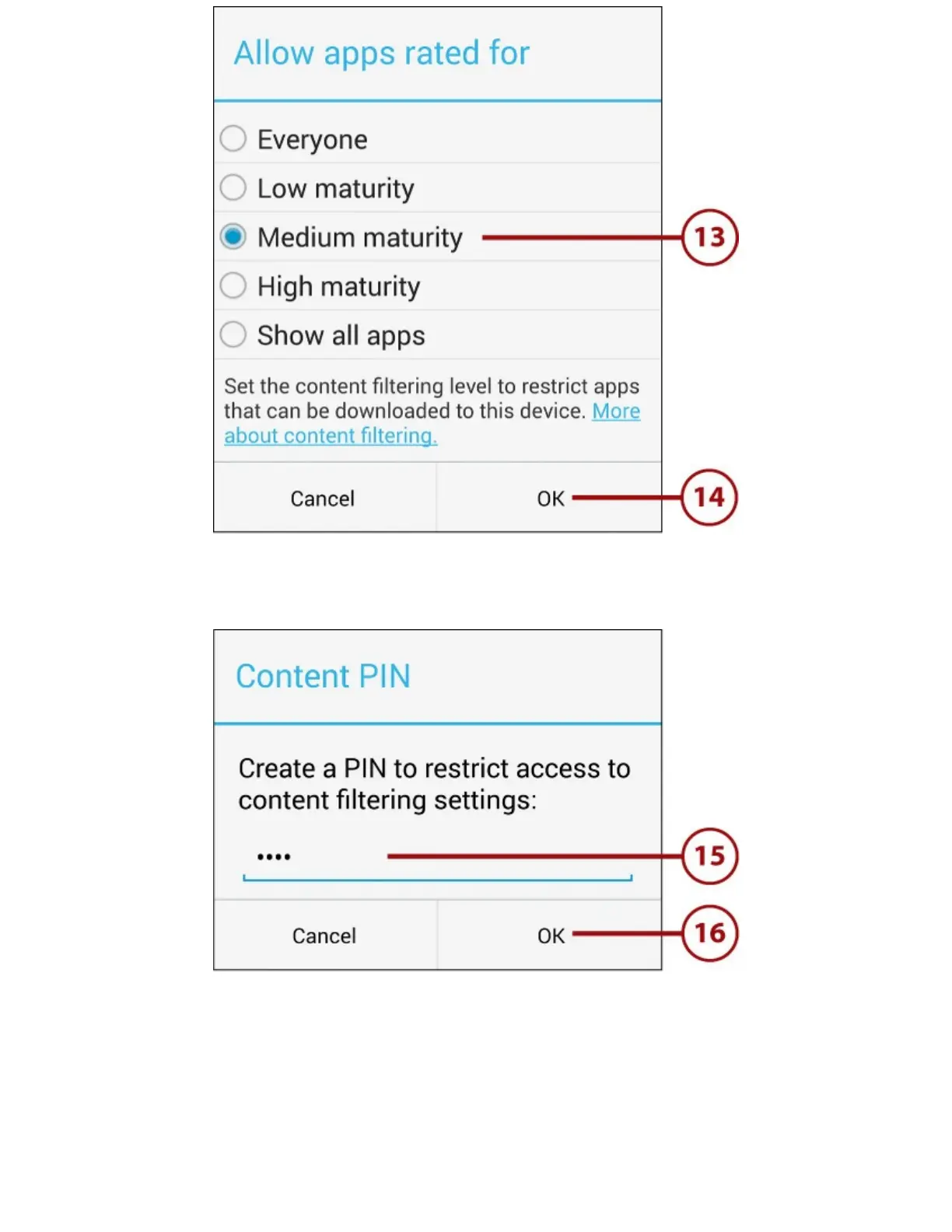 15.Tapthekeypadtosetafour-digitPINthatmustbetypedinbeforechangingtheGooglePlay