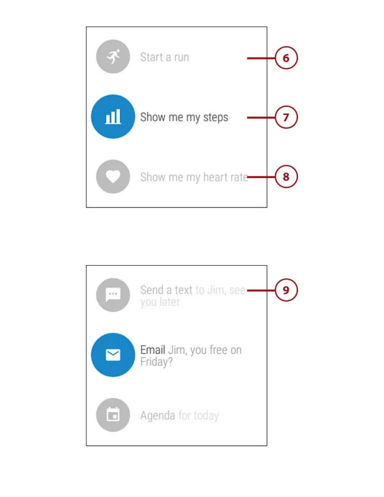 9.Say“Sendtext,”ortapandspeakthenameoftherecipientandthetextmessagetosendatext