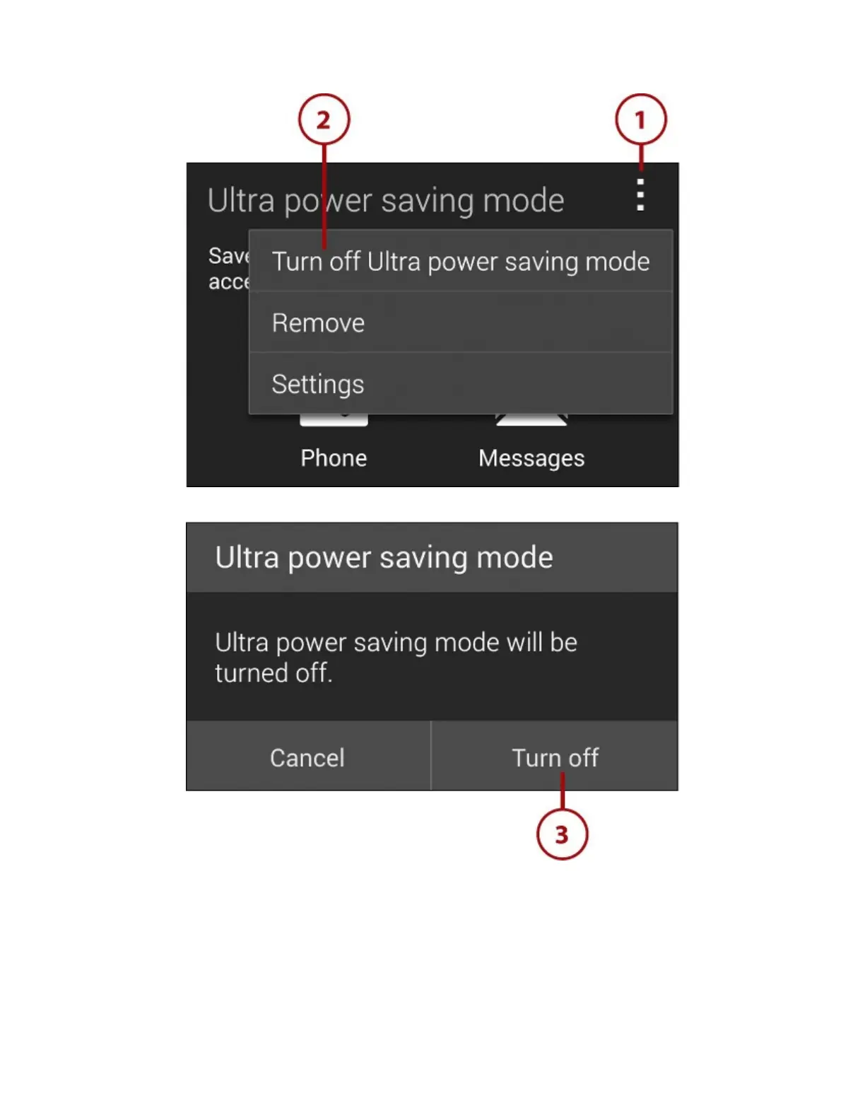 2.TapTurnOffUltraPowerSavingMode.AnUltraPowerSavingModescreenopens.